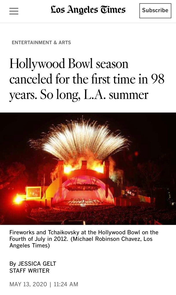 It’s one of my favorite venues – I’ve performed there on a half-dozen different shows – it is magical and wonderful and a defining part of summer in SoCal. I know festivals are being shuttered this summer and this was just an eventuality, but somehow when it’s a venue you know so well, it’s particularly devastating. Sorry, I don’t have much else to say today.