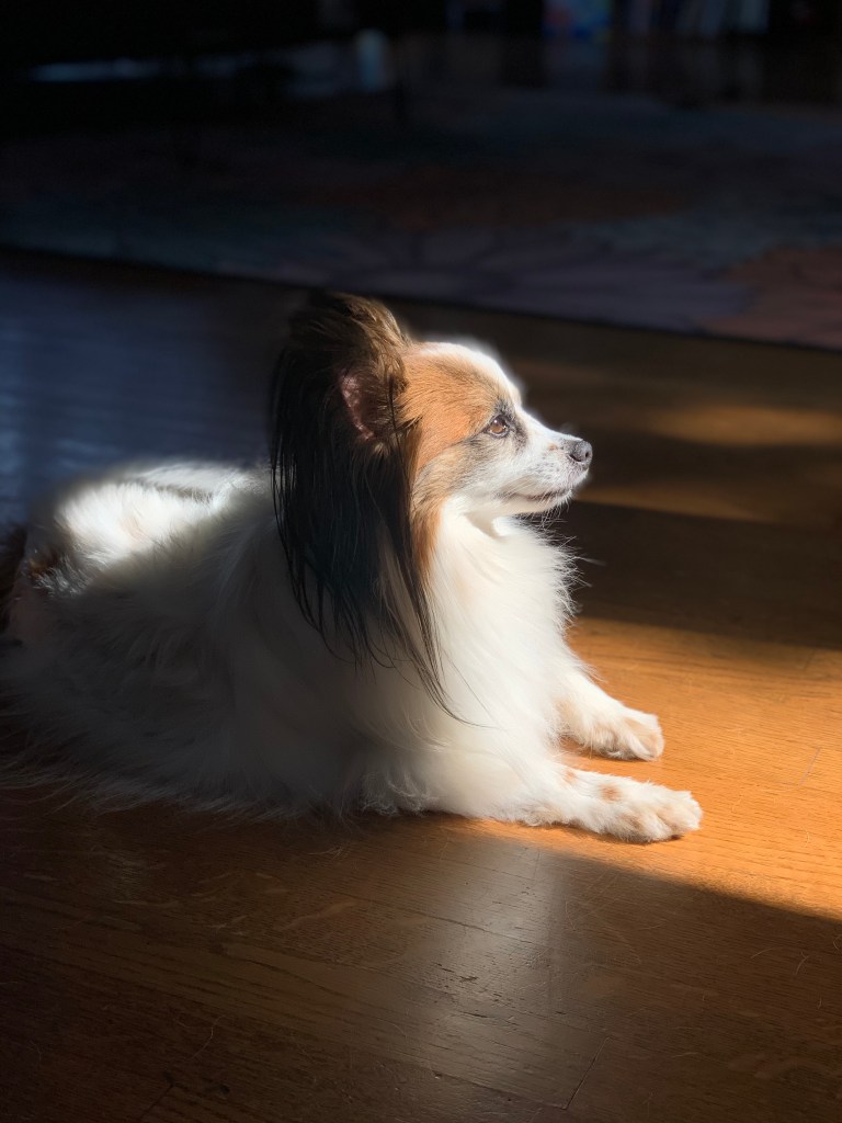 Life is simple for Pinkerton, devoid of worry of the future, enjoying playtime, and an occasional scratch, paired with words of praise. Being acutely aware of the beauty in the world is a gift and which we are all part of, including Pinkerton, and sharing that gift in gratitude brings joy, peace, and harmony. Enjoy life each day…