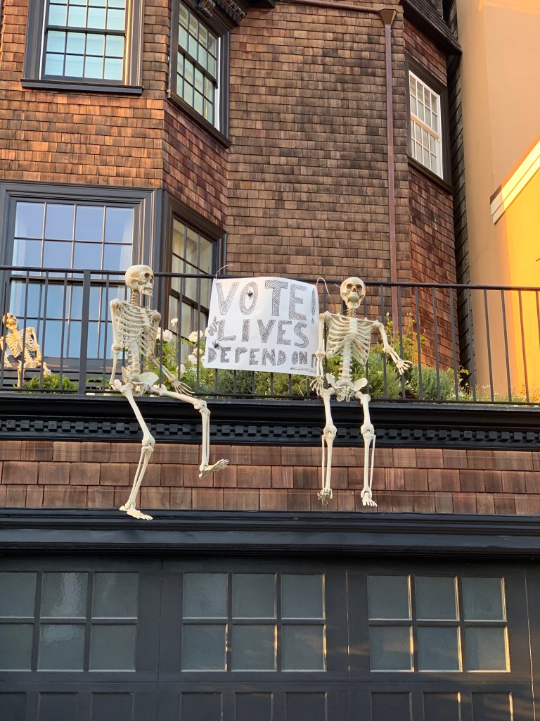 While my (non)celebration this Saturday will involve a small dinner with members of my Covid pod, I’ve certainly seen the enthusiasm with which many people have embraced this strange holiday. In my neighborhood in San Francisco, there seems to be an unspoken competition for elaborate outdoor decorations.